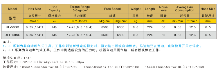 • 產(chǎn)品型號: 油壓脈沖氣動起子UL-50SD/ULT-50SD