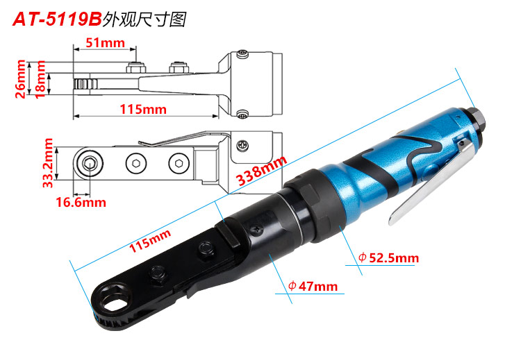中空棘輪扳手氣動特點(diǎn):(重力壓鑄外殼,強(qiáng)度更高不變形,提高耐用度)