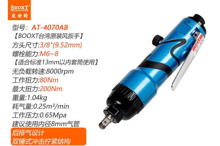 東莞市強(qiáng)勁五金工具有限公司提供臺(tái)灣BOOXT波世特品牌氣動(dòng)工具,直柄氣動(dòng)扳手AT-4070AB廠家直銷,首件享特價(jià)。咨詢熱線:4008301980