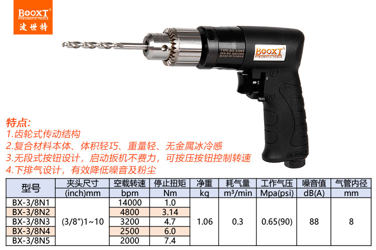 東莞市強勁五金工具有限公司提供臺灣BOOXT波世特品牌氣動工具,高速氣鉆BX-3/8N1廠家直銷,首件享特價。咨詢熱線:4008301980