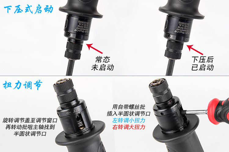 本機(jī)為觸壓啟動式,外調(diào)扭力,自動斷氣式。