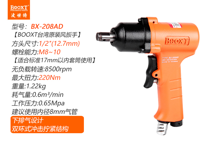 東莞市強勁五金工具有限公司提供臺灣BOOXT波世特品牌氣動工具,小型氣動扳手BX-208AD廠家直銷,首件享特價。咨詢熱線:4008301980