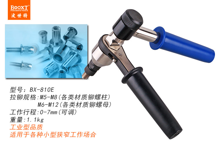 東莞市強勁五金工具有限公司提供臺灣BOOXT波世特品牌氣動工具,手動棘輪拉鉚螺母槍BX-810E廠家直銷,首件享特價。咨詢熱線:4008301980