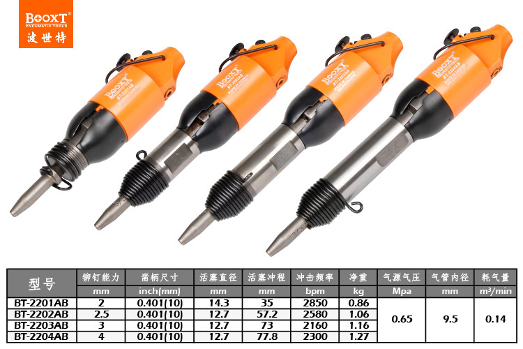 東莞市強勁五金工具有限公司提供臺灣BOOXT波世特品牌氣動工具,風(fēng)動鉚釘錘BT-2202AB廠家直銷,首件享特價。咨詢熱線:4008301980