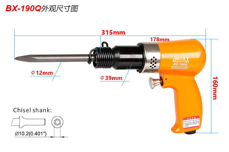 東莞市強(qiáng)勁五金工具提供臺(tái)灣BOOXT波世特品牌,氣動(dòng)沖擊鏟BX-190Q廠家直銷,首件享特價(jià)。咨詢熱線:4008301980