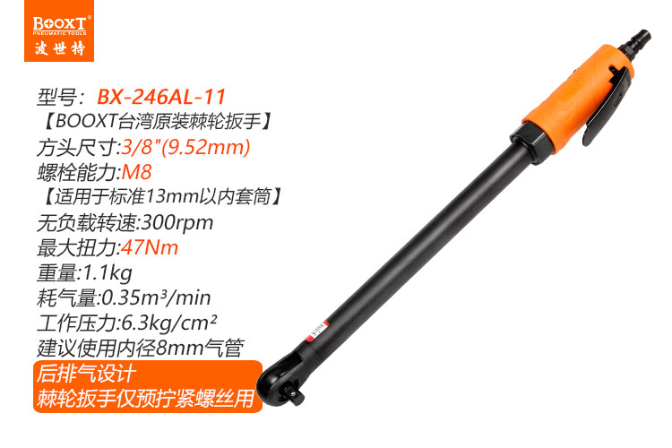 東莞市強(qiáng)勁五金工具有限公司提供臺灣BOOXT波世特品牌氣動工具,特加長氣動棘輪扳手BX-246AL-11廠家直銷,首件享特價。咨詢熱線:4008301980