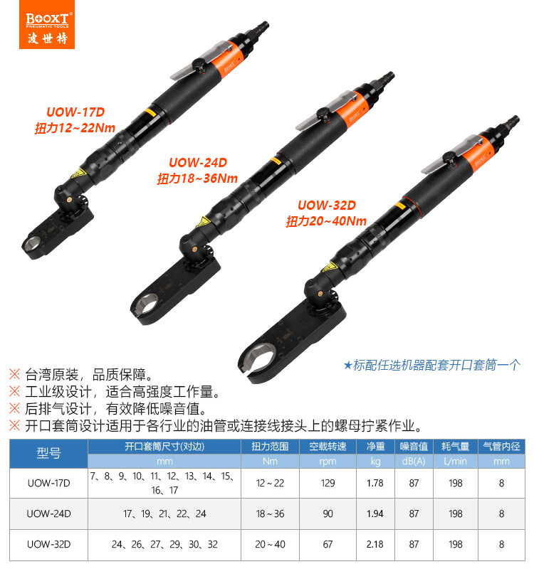 東莞市強勁五金工具有限公司提供臺灣BOOXT波世特品牌氣動工具,大扭力開口氣動扳手UOW-32D廠家直銷,首件享特價。咨詢熱線:4008301980