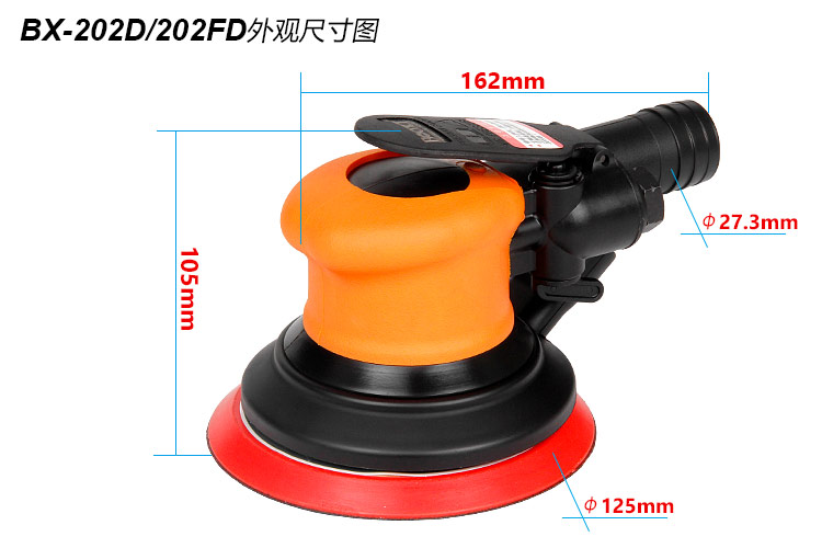 • 產(chǎn)品參數(shù): 底盤尺寸:125mm 【5寸】 空載轉(zhuǎn)速:11000rpm 偏擺直徑:2.5mm 重 量:0.74kg 耗 氣 量:0.57m3/min 【細磨/自吸塵】