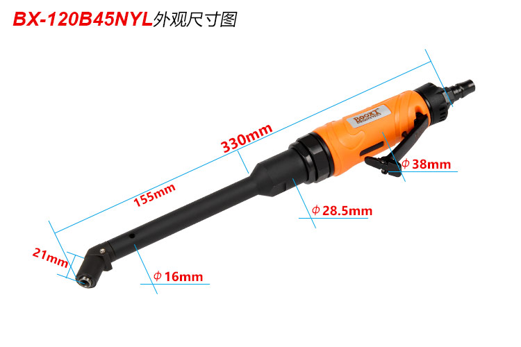 東莞市強(qiáng)勁五金工具有限公司提供臺(tái)灣BOOXT波世特品牌氣動(dòng)工具,加長(zhǎng)45度彎角氣鉆BX-120B45NYL廠家直銷,首件享特價(jià)。咨詢熱線:4008301980