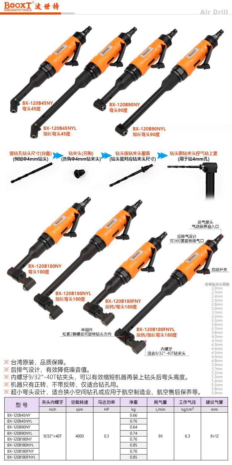 東莞市強(qiáng)勁五金工具有限公司提供臺(tái)灣BOOXT波世特品牌氣動(dòng)工具,航空180度偏角氣鉆BX-120B180NY廠家直銷,首件享特價(jià)。咨詢熱線:4008301980