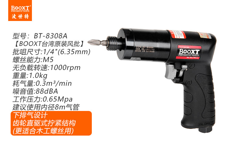 東莞市強(qiáng)勁五金工具有限公司提供臺(tái)灣BOOXT波世特品牌氣動(dòng)工具,齒輪式氣動(dòng)螺絲刀BT-8308A廠家直銷,首件享特價(jià)。咨詢熱線:4008301980